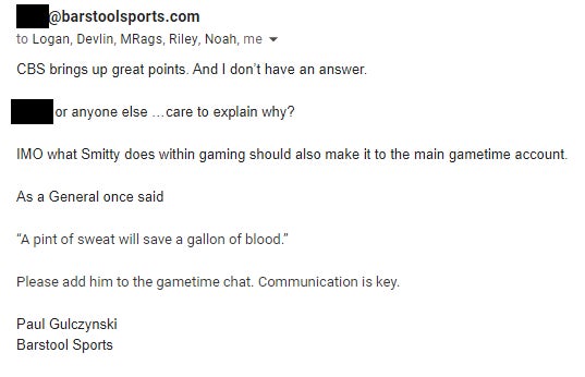 We've Got Ourselves A Full Fledged Barstool Gametime WAR Going Down In EMAILS, No Less!