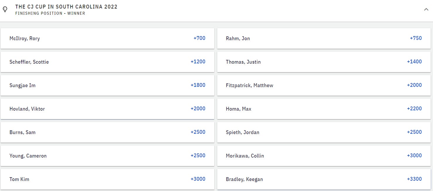 3 man playoff +2000 - The stack at T-2 for the Palmetto has me dreaming of a deep playoff. Yes please.