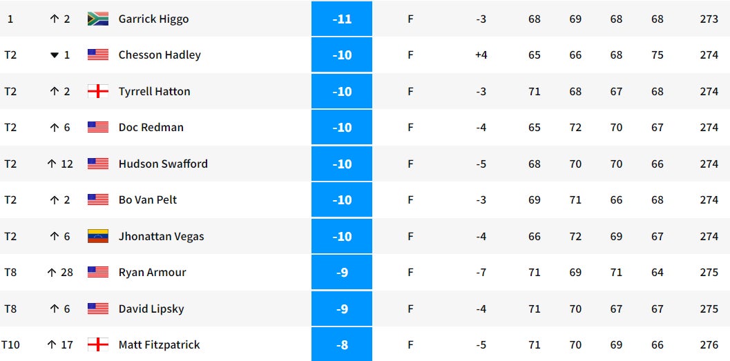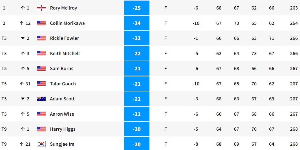 2021 CJ Cup Leaderboard