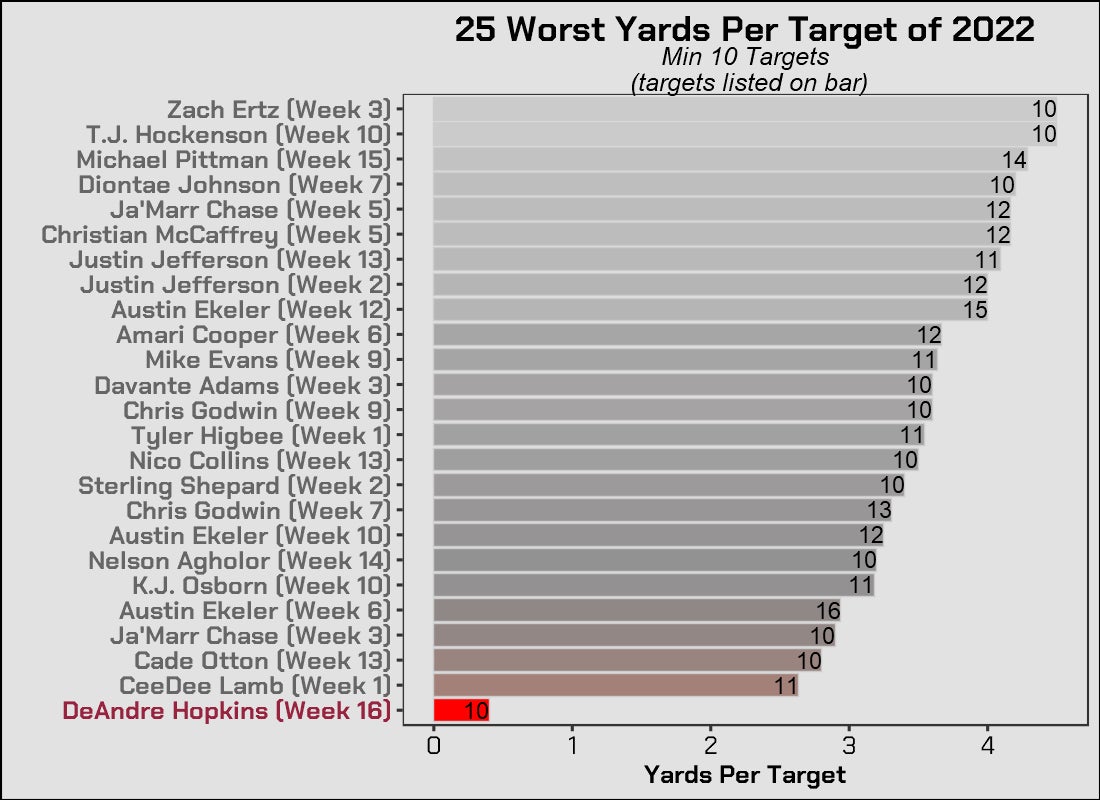Sad Stat #5 - DeAndre Hopkins averaged .4 yards per target in Week 16