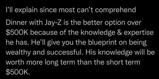 I'm starting to do a 180 on this whole situation. You wouldn't necessarily have to make your money via drugs either. You can use $1000 to buy yourself a brand new suit, which will give you the confidence to knock the socks off the company you interview with, and kickstart a lucrative career as a legitimate business man. Or maybe spend the $1000 on some sort of raffle ticket that wins you a dinner with Jay-Z himself, which we all know has the street value of roughly $500k.