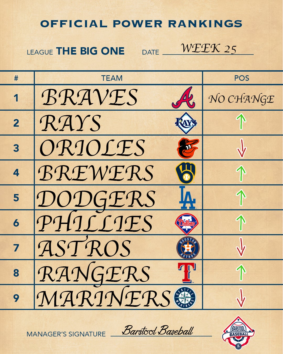 It's Monday which means there's fresh MLB Power Rankings to start the 25th week of the season.