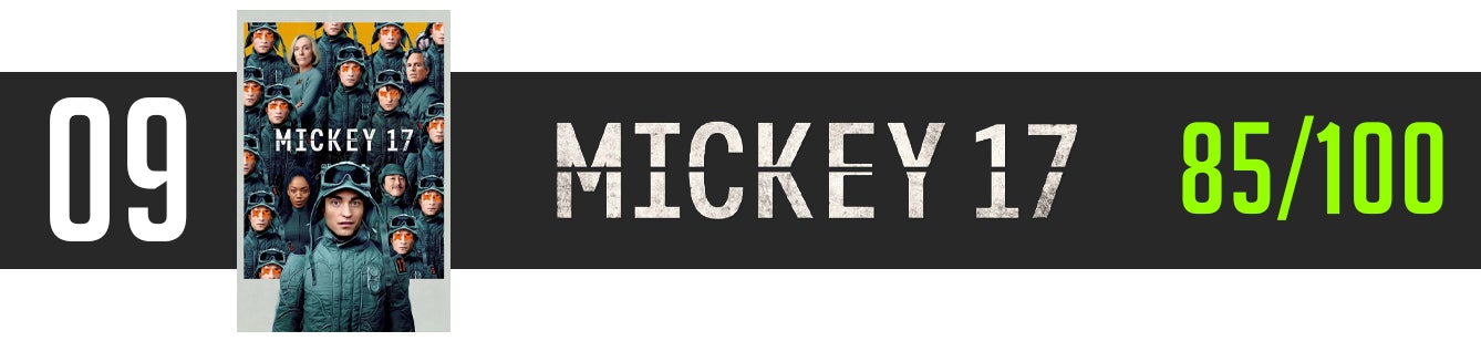 Here's another example of a director not being at the top of their game but still pumping out a good movie based on being so elite. Bong Joon-ho's 'Mickey 17' was a big swing as his first movie since 'Parasite', and not all of it works, but there is a charm to it that I can't deny. Robert Pattinson is great in a dual role (a theme for movies in 2025, especially from Warner Bros.), and his performance picks up some of the slack from a bit of a clunky script. It's a goofy movie with a ton of humor, and the big story moments that matter all land in an impactful way, even if there are pacing issues. This won't be for everyone, but I quite liked it.
