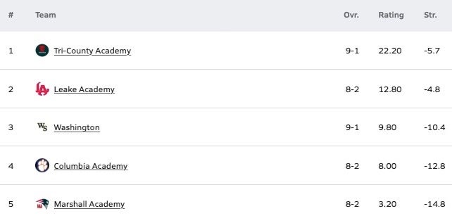 Tomorrow, Marshall Academy will play Central Hinds Academy in the first round of the Division 2 playoffs. Next Friday, Washington School will play Leake Academy in the first round of the Division 1 playoffs. Meaning Marshall Academy got their wish. Their insane stunt worked (final rankings).